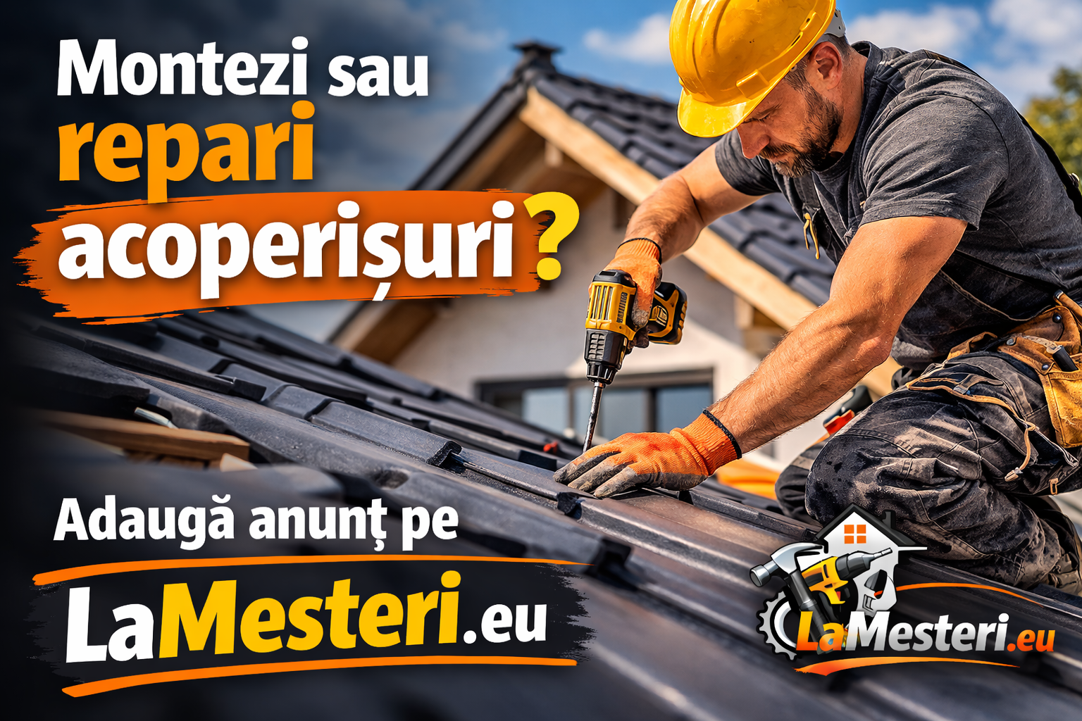 Pe platforma LaMesteri.eu poți găsi rapid firme specializate în montaj și reparații acoperișuri, comparând ofertele și alegând echipa potrivită pentru proiectul tău.