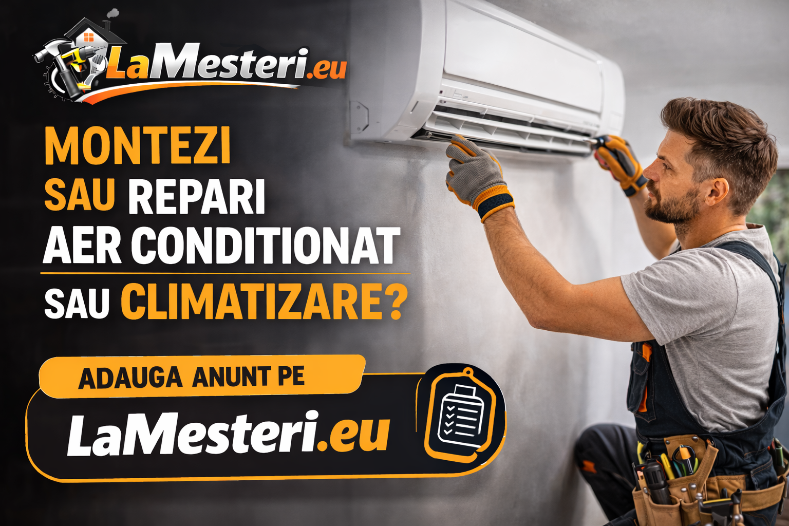 Pe LaMesteri.eu găsești specialiști autorizați în instalații de climatizare, gata să îți ofere soluții complete pentru confortul casei sau al spațiilor comerciale. Serviciile includ montaj, întreținere și reparații aparate de aer condiționat, sisteme VRF, pompe de căldură și instalații HVAC (Heating, Ventilation, Air Conditioning).