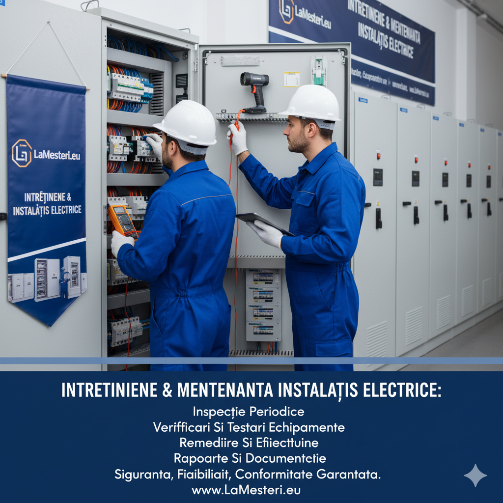 Pe LaMesteri.eu, poți găsi firme specializate și electricieni autorizați ANRE care oferă servicii profesionale de întreținere și mentenanță instalații electrice, adaptate nevoilor fiecărui client – persoane fizice, companii sau instituții publice.