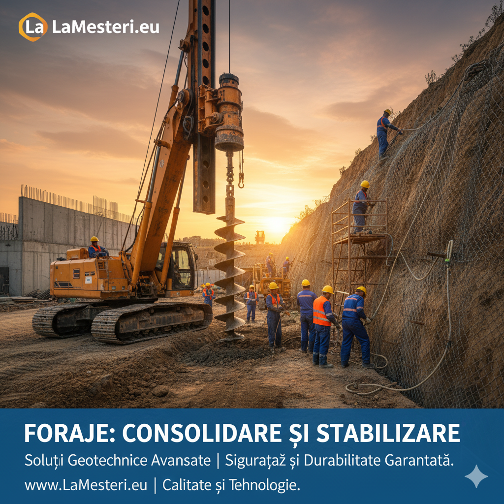 Pe LaMesteri.eu, găsești firme autorizate și meșteri specializați în execuția de foraje pentru consolidarea terenurilor și fundațiilor, cu echipamente moderne și tehnologii conforme standardelor europene.
