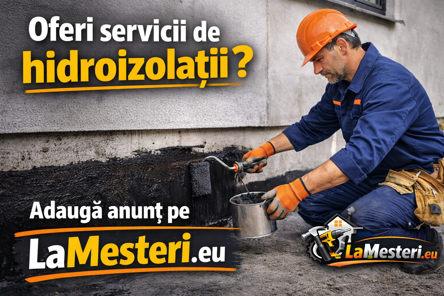 Pe lamesteri.eu găsiți meșteri specializați în izolații termice pentru case, blocuri și hale industriale, izolații fonice, hidroizolații pentru terase, fundații, subsoluri, acoperișuri tip terasă sau în pantă, precum și lucrări de etanșare a rosturilor și a zonelor critice. Mulți meșteri oferă și servicii conexe, precum reparații de acoperiș, montaj de sisteme de drenaj sau termoizolații interioare și exterioare, astfel încât să puteți rezolva totul cu o singură echipă.