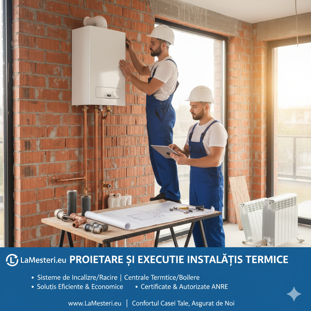 Pe LaMesteri.eu, poți găsi rapid firme și instalatori autorizați care oferă servicii complete de proiectare, execuție, montaj și întreținere instalații termice, adaptate fiecărui tip de clădire.