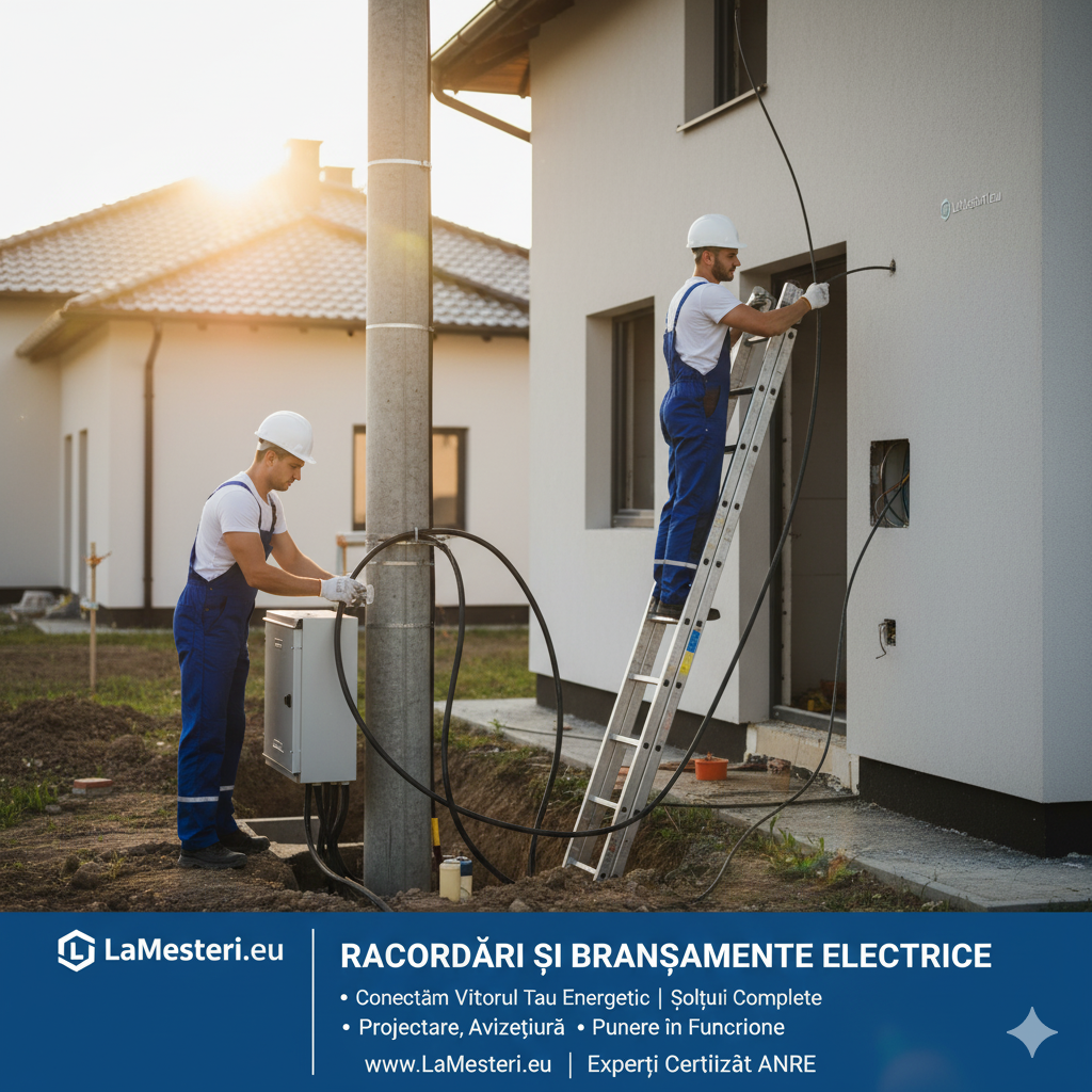 Pe LaMesteri.eu, găsești firme și electricieni specializați care oferă asistență completă și execută lucrări de racordare și branșamente electrice, asigurând legalitatea și conformitatea tehnică a întregului proces.