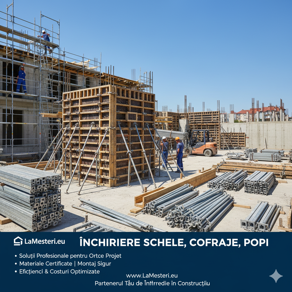 Pe LaMesteri.eu, poți găsi firme specializate în închirierea schelelor, cofrajelor și popilor metalici, oferind echipamente certificate, verificate tehnic și ușor de montat, potrivite pentru toate tipurile de proiecte – de la construcții rezidențiale la lucrări industriale de amploare.