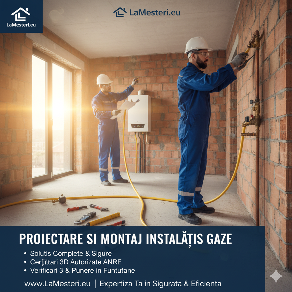Pe LaMesteri.eu, poți găsi firme specializate în proiectarea, execuția și montajul instalațiilor de gaze, care oferă servicii complete – de la documentație și obținerea avizelor, până la punerea în funcțiune și verificările periodice.